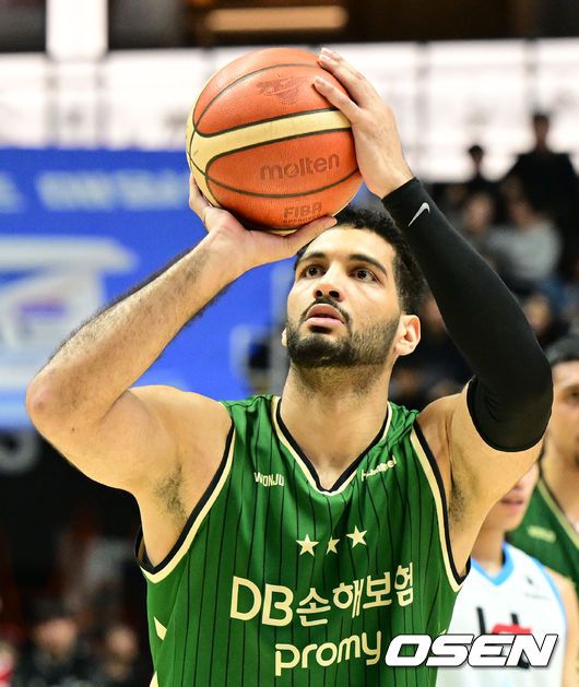 19일 오후 수원 KT 소닉붐 아레나에서 2025-2026 LG전자 프로농구 수원 KT와 원주 DB의 경기가 열렸다. KT는 11승 11패(6위), DB는 12승 9패(4위)를 기록중이다.2쿼터 DB 에삼 무스타파가 자유투를 시도하고 있다. 2025.12.19 /jpnews@osen.co.kr