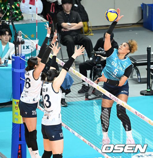 23일 오후 서울 장충체육관에서 프로배구 진에어 2025~26 V리그 GS칼텍스와 한국도로공사의 경기가 열렸다. GS칼텍스는 7승 8패 리그 4위, 한국도로공사는 13승 3패 1위에 올라 있다. 1세트 GS칼텍스 실바가 공격을 시도하고 있다. 2025.12.23 /sunday@osen.co.kr