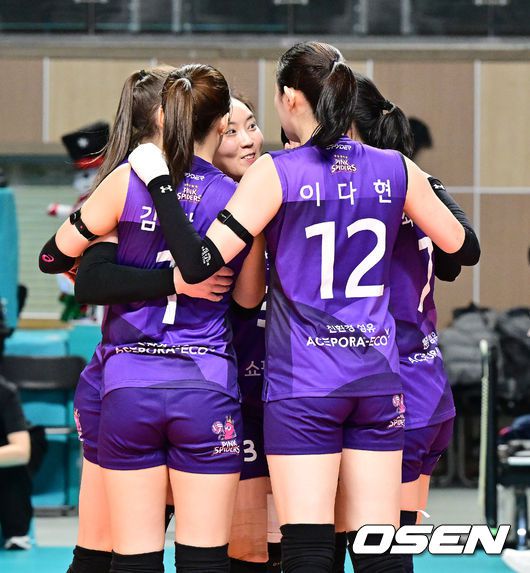 27일 오후 서울 장충체육관에서 프로배구 진에어 2025~26 V리그 GS칼텍스와 흥국생명의 경기가 열렸다. GS칼텍스는 7승 9패(승점23, 4위), 흥국생명은 9승 8패(승점28, 3위)를 기록중이다. 흥국생명 이나연이 2세트를 따내며 동료선수들과 기뻐하고 있다. 2025.12.27 /jpnews@osen.co.kr