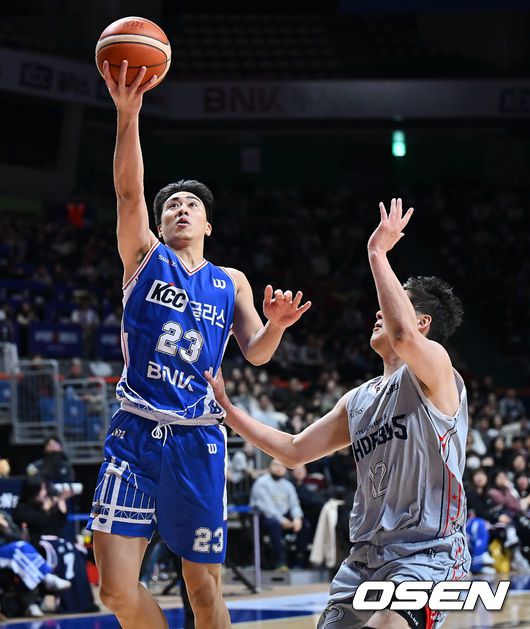 28일 부산 사직체육관에서 2025-2026 LG전자 프로농구 부산 KCC와 울산 현대모비스의 경기가 열렸다. 연승 행진이 멈춘 KCC가 이호현, 장재석 등 복귀 자원을 앞세워 분위기 반전에 나선다. 부산 KCC 윌리엄 나바로가 울산 현대모비스 함지훈의 마크를 피해 골밑슛을 시도하고 있다. 2025.12.28 / foto0307@osen.co.kr