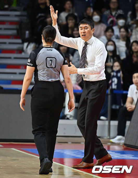 28일 부산 사직체육관에서 2025-2026 LG전자 프로농구 부산 KCC와 울산 현대모비스의 경기가 열렸다. 연승 행진이 멈춘 KCC가 이호현, 장재석 등 복귀 자원을 앞세워 분위기 반전에 나선다. 부산 KCC 이상민 감독이 심판에게 파울에 대해 어필하고 있다. 2025.12.28 / foto0307@osen.co.kr
