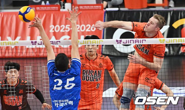 30일 부산 강서실내체육관에서 진에어 2025-2026 V리그 남자부 OK저축은행과 한국전력의 경기가 열렸다. 2연승을 달리고 있는 한국전력과 2연패에 빠진 OK저축은행이 맞붙는다. 최근 흐름이 엇갈린 두 팀의 대결만으로도 관심을 모으는 가운데, 권영민 한국전력 감독과 신영철 OK저축은행 감독의 국내 사령탑 라이벌리 역시 경기의 또 다른 관전 포인트로 떠오