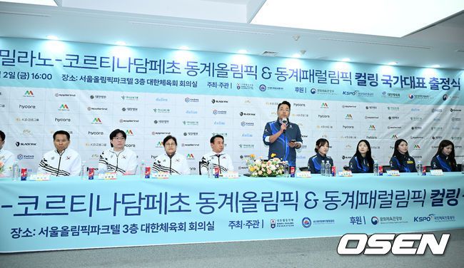 2일 서울 송파구 올림픽파크텔에서 ‘2026 밀라노-코르티나담페초 동계올림픽 및 패럴림픽 대한민국 컬링 국가대표 출정식’이 열렸다. 이날 행사는 역대 최초로 장애인과 비장애인 국가대표 공식 행사로 진행됐다. 대한컬링연맹 한상호 회장이 환영사를 하고 있다. 2026.01.02 /sunday@osen.co.kr