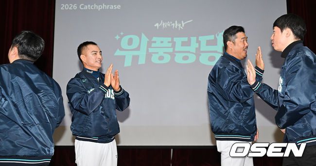 NC 다이노스가 5일 마산야구센터 올림픽기념관 공연장에서 2026년 신년회를 개최했다. 이번 신년회에는 이진만 대표이사, 임선남 단장, 이호준 감독, 공필성 퓨처스 감독, 주장 박민우를 비롯해 선수, 코칭스태프, 임직원 등 200명이 참가했다. 이호준 감독과 공필성 C팀 감독이 직원들과 하이파이브를 하고 있다. 2026.01.05 / foto0307@ose