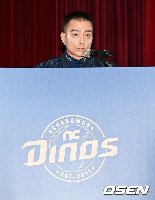 NC 다이노스가 5일 마산야구센터 올림픽기념관 공연장에서 2026년 신년회를 개최했다. 이번 신년회에는 이진만 대표이사, 임선남 단장, 이호준 감독, 공필성 퓨처스 감독, 주장 박민우를 비롯해 선수, 코칭스태프, 임직원 등 200명이 참가했다. 공필성 C팀 감독이 2026 시즌을 준비하는 감독의 이야기를 발표하고 있다. 2026.01.05 / foto030