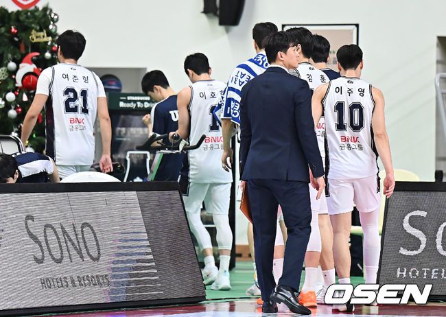 6일 울산 동천체육관에서 2025-2026 LG전자 프로농구 울산 현대모비스와 부산 KCC의 경기가 열렸다. 부산 KCC가 66-81로 패했다. 5연패에 빠진 부산 KCC 선수들이 경기장을 빠져 나가고 있다. 2026.01.06 / foto0307@osen.co.kr