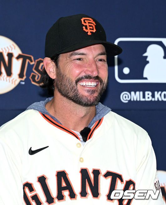7일 오후 경기 이천 LG 챔피언스파크에서 샌프란시스코 자이언츠 미디어데이가 열렸다. 샌프란시스코 구단은 이정후와 비텔로 감독, 윌리 아다메스가 참여하는 방한 프로그램을 진행 중이다. 이번 샌프란시스코의 한국 방문에는 래리 베어 CEO, 버스터 포지 사장, 잭 미나시안 단장 등 구단 주요 인사들이 함께한다. 샌프란시스코 토니 비텔로 감독이 미소를 짓고 있다