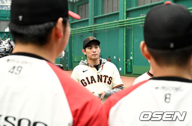 7일 오후 경기 이천 LG 챔피언스파크에서 샌프란시스코 자이언츠 미디어데이가 열렸다. 샌프란시스코 구단은 이정후와 비텔로 감독, 윌리 아다메스가 참여하는 방한 프로그램을 진행 중이다. 이번 샌프란시스코의 한국 방문에는 래리 베어 CEO, 버스터 포지 사장, 잭 미나시안 단장 등 구단 주요 인사들이 함께한다. 샌프란시스코 이정후가 야구 클리닉을 진행하고 있다