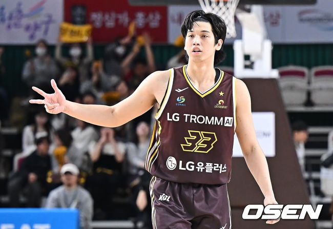 7일 창원 체육관에서 2025-2026 LG전자 프로농구 창원 LG와 서울 삼성의 경기가 열렸다. 삼성전 6연승을 질주하고 있는 LG가 이번 맞대결에서도 상승세를 이어갈 수 있을지 관심이 모아진다. 창원 LG 칼 타마요가 3점슛을 성공시키고 세리머니를 하고 있다. 2026.01.07 / foto0307@osen.co.kr