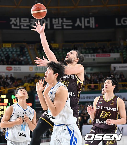 7일 창원 체육관에서 2025-2026 LG전자 프로농구 창원 LG와 서울 삼성의 경기가 열렸다. 삼성전 6연승을 질주하고 있는 LG가 이번 맞대결에서도 상승세를 이어갈 수 있을지 관심이 모아진다. 창원 LG 아셈 마레이가 서울 삼성 이규태의 마크를 피해 골밑슛을 시도하고 있다. 2026.01.07 / foto0307@osen.co.kr