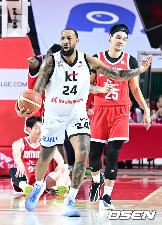 10일 서울 잠실학생체육관에서 ‘2025-2026 LG전자 프로농구’ 서울 SK와 수원 KT의 경기가 열렸다. 홈팀 SK는 16승 12패로 4위, 방문팀 KT는 15승 15패로 6위에 자리하고 있다. 3쿼터, KT 데릭 윌리엄스가 오펜스 파울에 아쉬워하고 있다. 2026.01.10 / dreamer@osen.co.kr