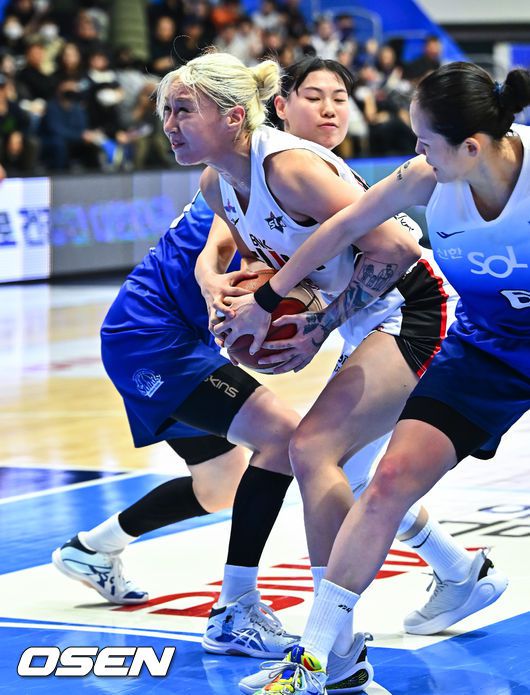 10일 오후 인천 도원실내체욱관에서 'BNK금융 2025~2026 여자프로농구'인천 신한은행과 부산 BNK 썸의 경기가 진행됐다. 6연패에 빠진 신한은행이 올 시즌 BNK썸에 두 차례 모두 패한 열세를 딛고 후반기 첫 경기에서 연패를 끊어 분위기 반전을 노리는 가운데, 공동 2위인 BNK썸 역시 상위권 유지를 위해 반드시 잡아야 하는 맞대결이다. 1쿼터 B