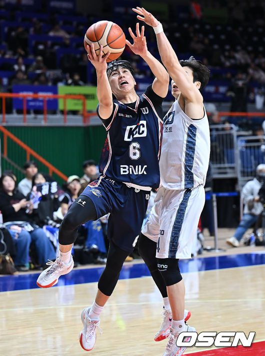 12일 부산 사직체육관에서 2025-2026 LG전자 프로농구 부산 KCC와 고양 소노의 경기가 열렸다. KCC는 2025~2026시즌 내내 부상 여파로 완전체를 꾸리지 못한 끝에 시즌 첫 6연패라는 최대 위기에 몰렸고, 삼각편대 재가동과 이재도 복귀로 전력을 회복한 소노를 상대로도 쉽지 않은 승부를 앞두게 됐다. 부산 KCC 최진광이 고양 소노 이재도의