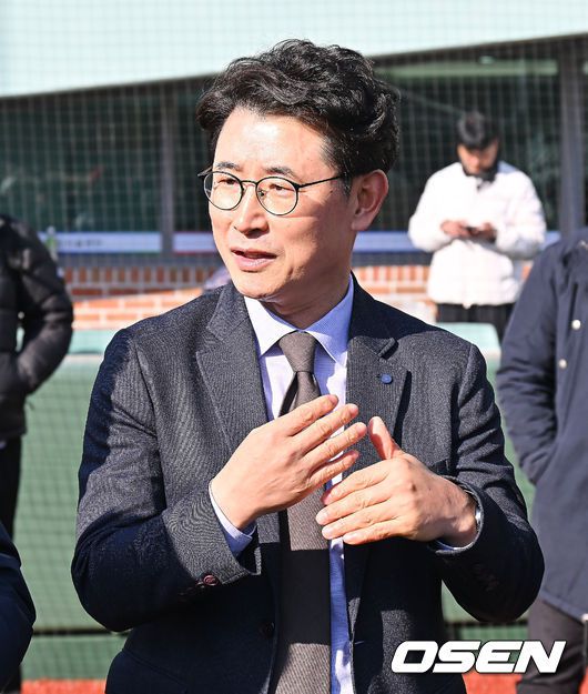 13일 울산 문수야구장에서 울산 웨일즈 트라이아웃이 열렸다. 정원 35명 모집에 무려 230명이 지원한 KBO 퓨처스리그 최초의 시민구단 울산 웨일즈는 13·14일 이틀간의 트라이아웃을 거쳐 15일 합격자를 발표한다. 울산 웨일즈 김동진 단장이 얘기하고 있다. 2026.01.13 / foto0307@osen.co.kr