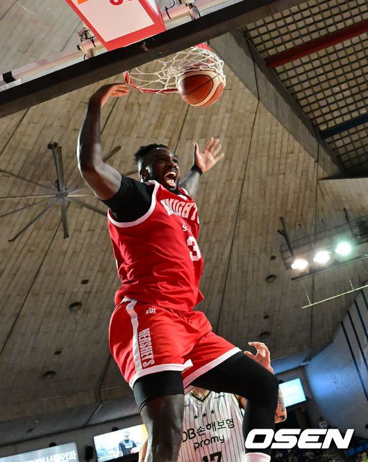 서울 SK가 13일 잠실학생체육관에서 개최된 2025-26 LG전자 프로농구 4라운드에서 원주 DB를 93-65로 이겼다. 4위 SK(18승 13패)는 2위 DB(20승 11패)의 8연승을 저지했다. 4쿼터 SK 자밀 워니가 투핸드 덩크를 성공시키고 있다. 2026.01.13/ jpnews@osen.co.kr