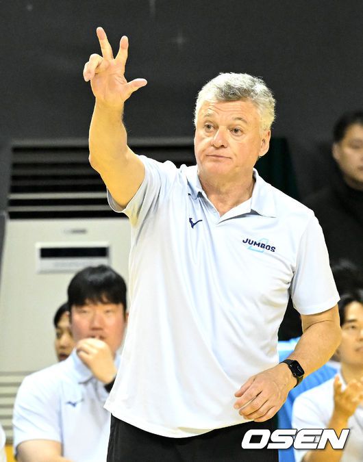 16일 경기도 의정부시 경민대학교 체육관에서 ‘진에어 2025~2026 프로배구 V리그’ KB손해보험과 대한항공의 경기가 열렸다. 홈팀 KB손해보험은 12승 10패 승점 37로 3위, 방문팀 대한항공은 14승 7패 승점 42로 1위를 기록하고 있다. 2세트 대한항공 헤난 감독이 작전을 지시하고 있다. 2026.01.16 /sunday@osen.co.kr