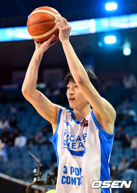 17일 서울 송파구 잠실실내체육관에서 2025-2026 LG전자 프로농구 올스타전 전야제가 열렸다. 이번 올스타전은 2015-2016시즌 이후 10년 만에 잠실실내체육관에서 열리는 경기이자, 해당 체육관 철거 전 마지막으로 열리는 올스타전이다. KT 박민재가 포카리스웨트 3점슛 콘테스트 예선에서 슛을 하고 있다. 2026.01.17 /cej@osen.co.