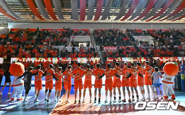 [사진] 짜릿한 역전승 기쁨 팬들과 함께 나누는 OK저축은행 선수들