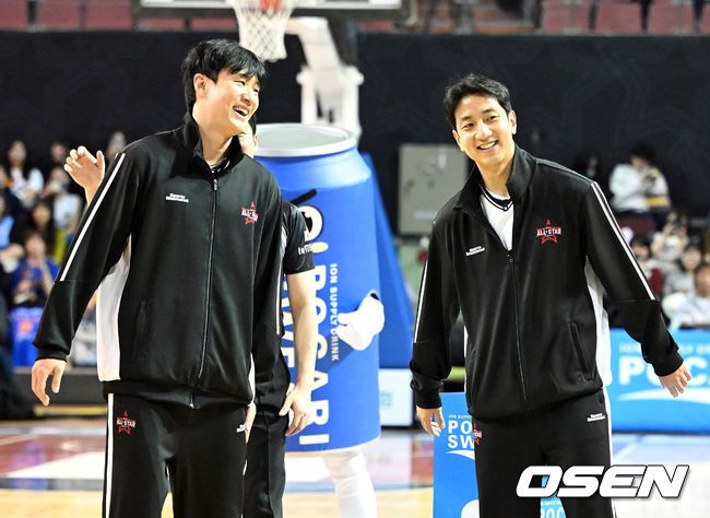 볼거리로 가득 찼던 올스타전의 마지막은 팀 브라운의 승리였다. 18일 잠실실내체육관에서 열린 2025-2026 LG전자 프로농구 올스타전 메인 경기에서 '팀 브라운'이 '팀 코니'를 131-109로 꺾었다. 경기 내내 덩크와 3점슛이 쏟아진 가운데, 네이던 나이트가 47점 17리바운드 9어시스트를 기록하며 승리를 이끌었다. 허웅과 허훈이 환하게 웃고 있다.