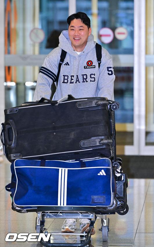 2026시즌 스프링캠프 1차 훈련 나서는 두산 베어스 선발대가 18일 인천국제공항을 통해 호주 시드니로 출국했다. 본진은 23일 시드니로 출국해 1차 캠프를 진행한 뒤, 일본 미야자키에서 2차 캠프를 이어간다. 두산 양석환이 공항으로 들어서고 있다. 2026.01.18 / soul1014@osen.co.kr