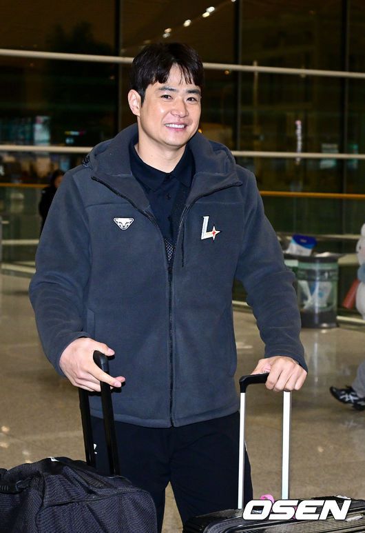 프로야구 SSG 랜더스 스프링캠프 선발대가 19일 오전 인천공항을 통해 미국 플로리다로 출국했다. SSG는 2026 시즌을 준비하기 위해 미국 플로리다주 베로비치에서 1차 스프링캠프를 펼친다. SSG 김재환이 출국을 앞두고 취재진과 대화를 나누고 있다. 2026.01.19 / dreamer@osen.co.kr