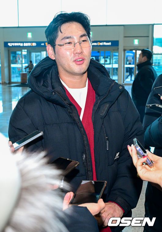 프로야구 키움 히어로즈가 2026 시즌을 준비하기 위해 22일 오전 대만 가오슝으로 출국했다. 키움은 22일부터 3월 7일까지 총 45일간 대만 가오슝에서 2026시즌을 위한 스프링캠프에 돌입한다. 이번 캠프에는 설종진 감독을 포함한 코칭스태프 12명과 선수 48명 등 총 60명이 참가한다. 키움 임지열이 출국을 앞두고 취재진과 인터뷰를 하고 있다. 202