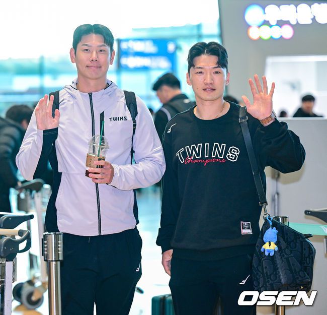 프로야구 LG 트윈스가 22일 오후 2026 시즌을 준비하기 위해 22일 오후 인천공항을 통해 미국으로 출국했다. LG는 오는25일부터2월22일까지 미국 애리조나에스프링캠프를 꾸리고 염경엽감독과코칭스태프18명,주장 박해민을 비롯한 선수40명이 담금질에 나선다. LG 박해민과 홍창기가 출국 전 인사를 전하고 있다. 2026.01.22 / dreamer@ose