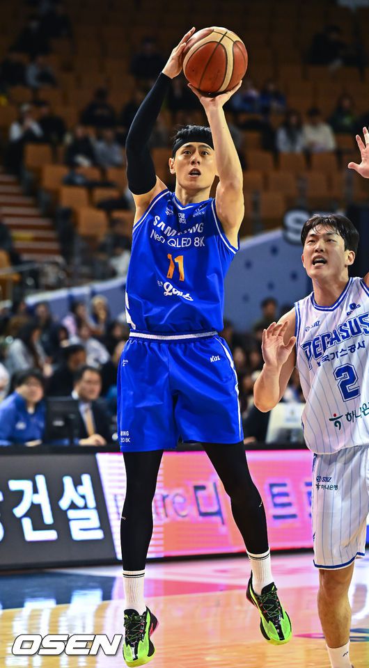 22일 서울 잠실실내체육관에서 2025-26 LG전자 프로농구 서울 삼성과 대구 한국가스공사의 경기가 진행됐다. 서울 삼성은 10승 21패로 10위, 대구 한국가스공사는 11승 21패로 공동 8위에 올랐다. 두 팀의 승차는 단 반 게임 차. 이날의 승패로 순위가 역전될 수 있다. 2쿼터 삼성 이관희가 슛을 시도하고 있다. 2026.01.22 / soul10