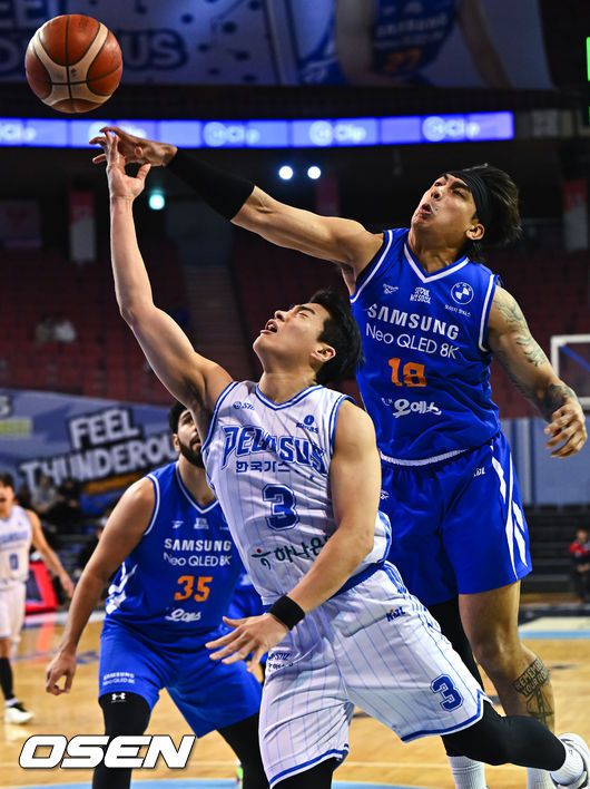 22일 서울 잠실실내체육관에서 2025-26 LG전자 프로농구 서울 삼성과 대구 한국가스공사의 경기가 진행됐다. 서울 삼성은 10승 21패로 10위, 대구 한국가스공사는 11승 21패로 공동 8위에 올랐다. 두 팀의 승차는 단 반 게임 차. 이날의 승패로 순위가 역전될 수 있다. 4쿼터 삼성 구탕이 한국가스공사 정성우에게 파울을 하고 있다 2026.01.2