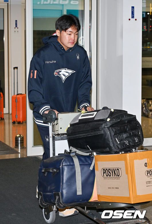 프로야구 한화 이글스가 2026 시즌을 준비하기 위해 23일 오전 인천공항을 통해 호주 멜버른으로 1차 스프링캠프를 떠났다. 김경문 감독이 이끄는 한화 선수단은 코치진 17명, 선수 46명을 합해 63명으로 1차 스프링캠프 명단을 꾸렸다. 한화 정우주가 출국길에 오르고 있다. 2026.01.23 / rumi@osen.co.kr