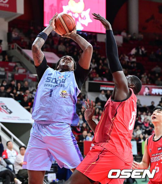 23일 오후 안양 정관장 아레나에서 2025-2026 LG전자 프로농구 안양 정관장과 고양 소노의 경기가 열렸다. 정관장은 2위(22승 11패), 소노는 7위(12승20패)를 기록중이다. 1쿼터 소노 네이던 나이트가 정관장 조니 오브라이언트의 수비를 피해 슛을 시도하고 있다. 2026.01.23 /jpnews@osen.co.kr