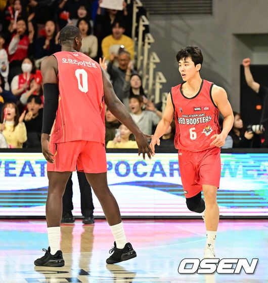 23일 오후 안양 정관장 아레나에서 2025-2026 LG전자 프로농구 안양 정관장과 고양 소노의 경기가 열렸다. 정관장은 2위(22승 11패), 소노는 7위(12승20패)를 기록중이다. 1쿼터 정관장 박지훈이 3점슛을 성공시키며 기뻐하고 있다. 2026.01.23 /jpnews@osen.co.kr