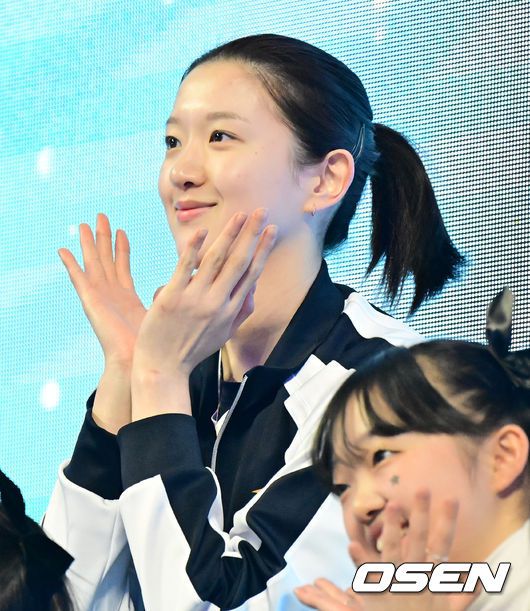 25일 강원도 춘천 호반체육관에서 진에어 2025-2026 V-리그 올스타전이 열렸다. 이번 올스타전의 컨셉은 ‘올스타 빌리지 인 춘천’으로 별들과 함께 추억이 가득 채워지는 올스타 마을이라는 의미를 담고 있는데, 팬들을 위한 다채로운 현장 이벤트를 선보였다. 흥국생명 이다현이 팬들과 즐거운 시간을 갖고 있다. 2026.01.25 /jpnews@osen.c