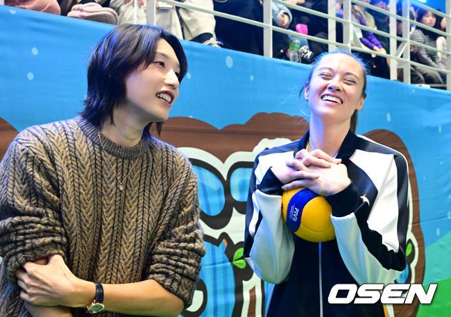 25일 강원도 춘천 호반체육관에서 진에어 2025-2026 V-리그 올스타전이 열렸다. 이번 올스타전의 컨셉은 ‘올스타 빌리지 인 춘천’으로 별들과 함께 추억이 가득 채워지는 올스타 마을이라는 의미를 담고 있는데, 팬들을 위한 다채로운 현장 이벤트를 선보였다. 김연경이 흥국생명 레베카와 이야기를 나누며 즐거워하고 있다. 2026.01.25 /jpnews@o