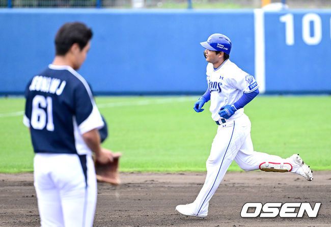 2026 WBC(월드베이스볼클래식)를 준비하는 대한민국 야구 대표팀이 20일 오후 일본 오키나와 온나손 아카마 구장에서 프로야구 삼성 라이온즈와 연습경기를 펼쳤다. 야구 대표팀은 오키나와에서 국내 팀들과 6차례 연습경기를 치르며 전력을 끌어올릴 예정이다. 4회말 1사 1, 2루 상황 삼성 양우현이 역전 우월 스리런포를 날리고 그라운드를 돌고 있다. 2026