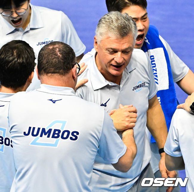 22일 오후 인천 계양체육관에서 프로배구 진에어 2025~26 V리그 대한항공과 현대캐피탈의 경기가 열렸다. 이 경기에서 대한항공은 현대캐피탈에 3-0(25-19, 25-16, 25-20) 셧아웃 완승을 거두며 1위에 올라섰다. 경기를 마치고 대한항공 헤난 달 조토 감독이 기뻐하고 있다. 2026.02.22 / rumi@osen.co.kr