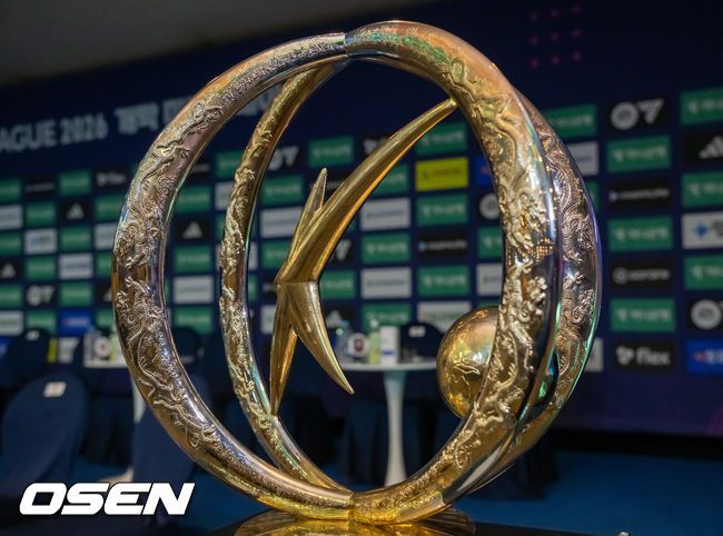 25일 서울 서대문구 스위스그랜드 호텔 컨벤션센터에서 하나은행 K리그 2026 개막 미디어데이가 진행됐다. 프로축구 K리그 29개 구단이 새 시즌 개막을 앞두고 저마다 당찬 출사표를 던졌다. K리그 우승 트로피가 행사장에 놓여져 있다, 2026.02.25 / soul1014@osen.co.kr