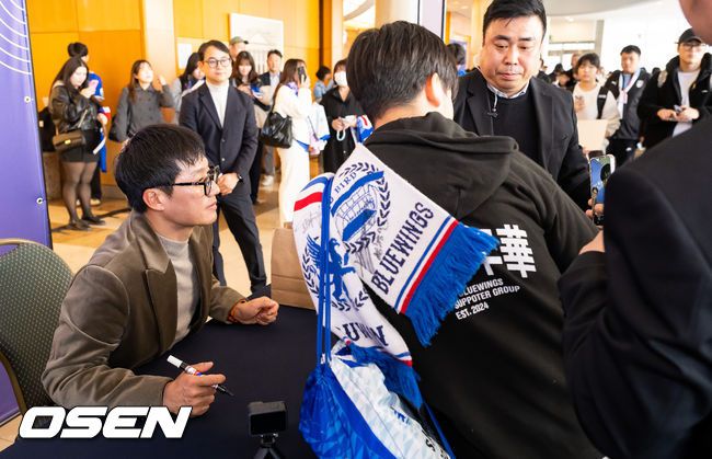 25일 서울 서대문구 스위스그랜드 호텔 컨벤션센터에서 하나은행 K리그 2026 개막 미디어데이(2부 K리그2)가 진행됐다. 프로축구 K리그 29개 구단이 새 시즌 개막을 앞두고 저마다 당찬 출사표를 던졌다. 수원 삼성 이정효 감독이 팬들에게 사인을 해주고 있다. 2026.02.25 / soul1014@osen.co.kr