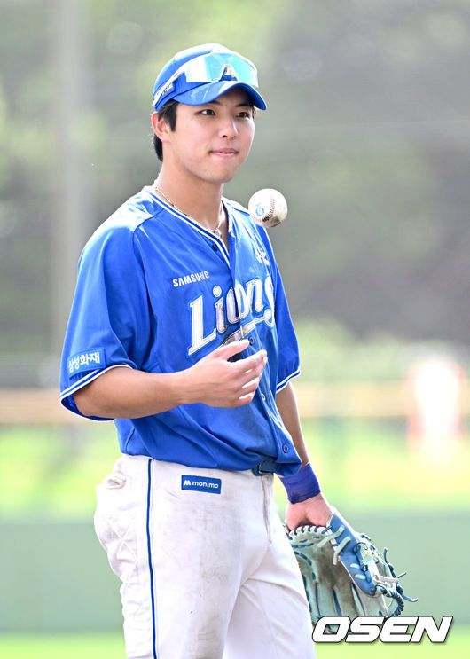 프로야구 삼성 라이온즈가 28일 일본 오키나와 나하 셀룰러 스타디움에서 일본프로야구 요미우리 자이언츠와 연습경기를 펼쳤다. 삼성은 요미우리를 상대로 최원태를 선발로 내세웠다. 7회말 무사 1, 3루 상황 삼성 3루수 김영웅이 수비를 준비하고 있다. 2026.02.28 / dreamer@osen.co.kr