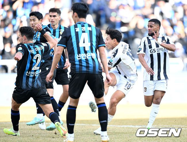 28일 오후 인천축구전용경기장에서 '하나은행 K리그1 2026' 인천유나이티드와 FC서울의 경기가 열렸다. 이번 시즌 리그 공식 개막전인 이번 맞대결은 예매 시작과 동시에 매진을 앞두며 팬들의 폭발적인 관심을 증명했다. 후반 FC서울 조영욱 팀의 두 번째 골을 성공시키고 있다. 2026.02.28 /sunday@osen.co.kr