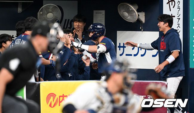 3일 일본 오사카 교세라돔에서 월드베이스볼클래식(WBC) 공식 연습 경기 한국 야구 대표팀과 오릭스 버팔로스의 경기가 열렸다. 우리 대표팀은 연습 경기 2차전을 치른 뒤 5일 일본 도쿄돔에서 체코와 WBC 조별리그 1차전에서 격돌한다. 5회초 1사에서 한국 셰이 위트컴이 솔로 홈런을 치고 더그아웃에서 박해민과 기쁨을 나누고 있다. 2026.03.03 /sp