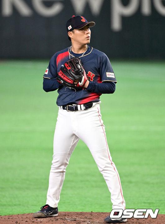 6일 일본 도쿄돔에서 월드베이스볼클래식(WBC) 조별리그 C조 일본과 대만의 경기가 열렸다. 일본은 야마모토 요시노부, 대만은 쩡하오쥔을 선발로 내세웠다. 3회말 2사 1,2루에서 일본 야마모토 요시노부가 피치클락 위반 판정에 아쉬워하고 있다. 2026.03.06 /spjj@osen.co.kr