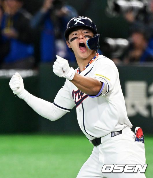 8일 일본 도쿄돔에서 2026 월드베이스볼클래식(WBC) 1라운드 C조 조별리그 대한민국과 대만의 경기가열렸다. 한국은 전날(7일) 일본과의 경기에서 6-8로 석패했다. 앞서 체코전을 11-4로 잡았던 한국은 1승1패를 마크하게 됐고, 남은 대만전과 호주전에 사활을 걸어야 한다. 6회말 1사 1루에서 한국 김도영이 역전 좌월 투런포를 날리며 기뻐하고 있다.