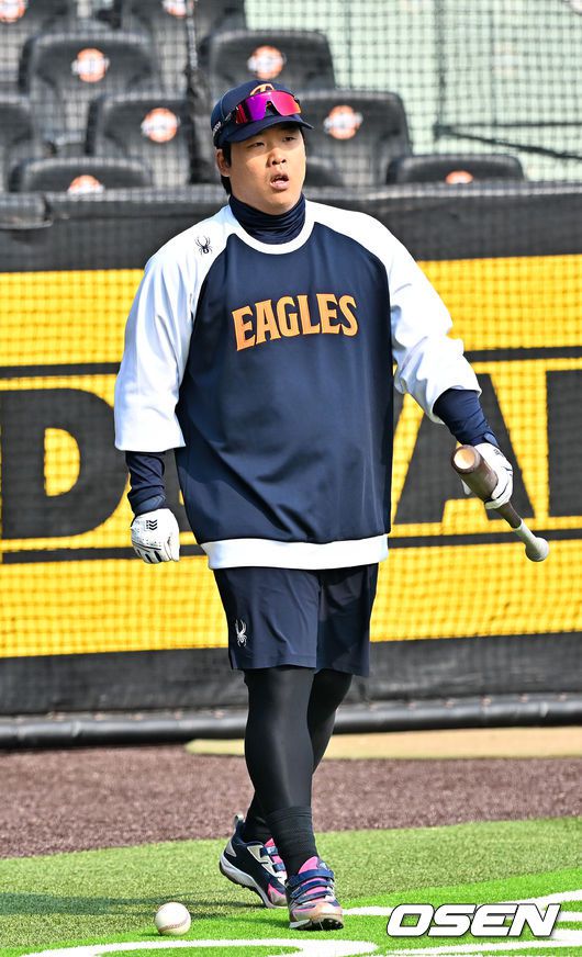 12일 대전 한화생명볼파크에서 2026 신한 SOL KBO리그 시범경기 한화 이글스와 삼성 라이온즈의 경기가 열릴 예정인 가운데 경기 전 훈련이 진행됐다. 시범경기는오늘(12일)부터오는 24일까지 진행되며, 각 팀이 12경기씩 치러 총 60경기가 펼쳐진다. 경기 전 한화 강백호가 타격연습을 하고 있다. 2026.03.12 /rumi@osen.co.kr
