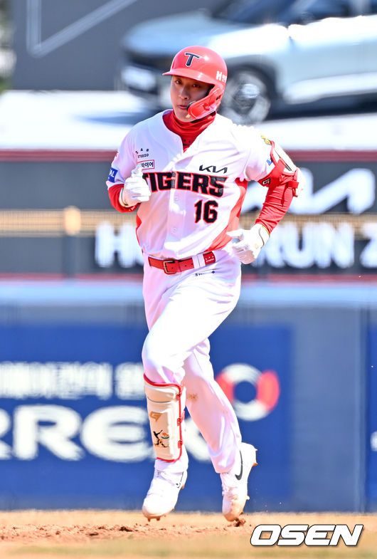 14일 광주기아챔피언스필드에서 2026 신한 SOL KBO리그 시범경기 KIA 타이거즈와 KT 위즈의 경기가 열렸다. 시범경기는 12일부터 오는 24일까지 진행되며, 각 팀이 12경기씩 치러 총 60경기가 펼쳐진다. 3회말 무사 주자 1루 KIA 윤도현이 동점 투런 홈런을 때린 후 그라운드를 돌고 있다. 2026.03.14 / rumi@osen.co.kr