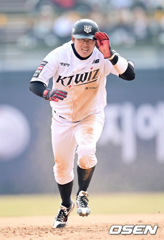 16일 경기도 수원 KT위즈파크에서 ‘2026 신한 SOL KBO리그’ 시범경기 KT 위즈와 LG 트윈스의 경기가 열린다. 홈팀 KT는 권성준, 방문팀 LG는 라클란 웰스를 선발 투수로 내세웠다. 5회말 2사 1루 상황 KT 이강민 타석 때 주자 허경민이 2루 도루에 이어 상대 실책을 틈타 3루까지 내달리고 있다. 2026.03.16 / dreamer@os