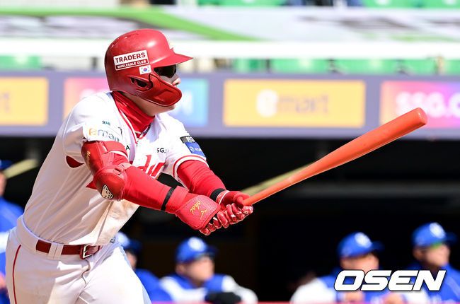 17일 인천 SSG랜더스필드에서 ‘2026 신한 SOL KBO리그’ 시범경기 SSG 랜더스와 삼성 라이온즈의 경기가 열렸다. 홈팀 SSG는 앤서니 베니지아노, 방문팀 삼성은 이승민을 선발로 내세웠다. 5회말 1사 2루 상황 SSG 최지훈이 달아나는 중월 투런포를 날리고 있다. 2026.03.17 / dreamer@osen.co.kr