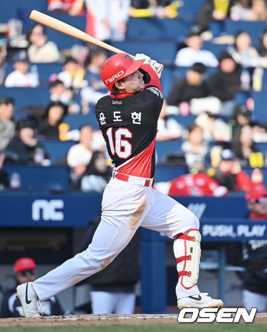 17일 창원NC파크에서 2026 신한 SOL KBO 리그 시범경기 NC 다이노스와 KIA 타이거즈의 경기가 열렸다. 홈팀 NC는 테일러가, 방문팀 KIA는 양현종이 선발 출전했다. KIA 타이거즈 윤도현이 8회초 1사 2,3루 우익수 희생플라이를 치고 있다. 2026.03.17 / foto0307@osen.co.kr