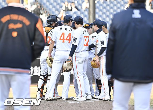 프로야구 한화 이글스가 KIA 마운드를 두드리고 시범경기 2연승을 달성했다. 김경문 감독이 이끄는 한화는 20일 대전 한화생명 볼파크에서 열린 2026 신한 SOL KBO리그 KIA와의 시범경기에서 13-8로 승리했다. 전날 7-5 끝내기 승리를 거뒀던 한화는 이틀 연속 KIA를 잡고 시범경기 전적 4승4패를 만들었다. 경기종료 후 한화 선수들이 승리의 기