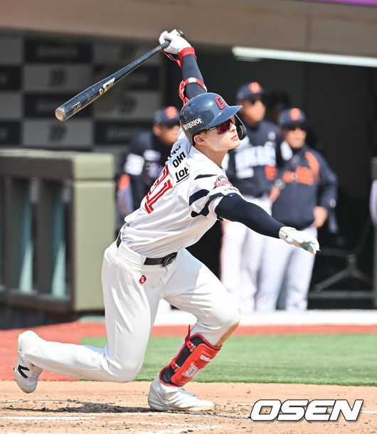 21일 부산 사직야구장에서 2026 신한 SOL KBO 리그 롯데 자이언츠와 한화 이글스의 시범경기가 열렸다. 홈팀 롯데는 로드리게스가, 방문팀 한화는 엄상백이 선발 출전했다. 롯데 자이언츠 윤동희가 3회말 무사 1루 우익수 뒤 2루타를 치고 있다. 2026.03.21 / foto0307@osen.co.kr
